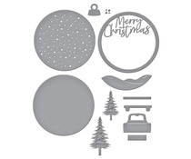Through the Woods Etched Dies is part of the Christmas Traditions Collection and can be used in several different designing options. Nest all 12 thin metal dies to create a fun layered Christmas tree scene in an ornament arrangement. Create a window or a shaker card. Use the scene itself for a great focal accent. Approximate Size(s): Circle Outline: 3.40 x 3.40 in./8.60 x 8.60 cm; Merry Christmas Insert: 3.00 x 3.00 in./7.60 x 7.60 cm; Snow Insert: 3.28 x 3.28 in./8.30 x 8.30 cm; Snow Bank: 2.80 x 0.90 in./7.10 x 2.30 cm; Large Tree: 1.20 x 2.15 in./3.00 x 5.50 cm; Small Tree: 0.90 x 1.65 in./2.30 x 4.20 cm; Ornament Topper: 0.70 x 0.70 in./1.80 x 1.80 cm; Truck: 1.60 x 1.40 in./4.10 x 3.60 cm; Tire Layer: 1.39 x 0.96 in./3.50 x 2.40 cm; Bumper: 1.56 x 0.15 in./3.90 x 0.40 cm; Tailgate Insert: 1.02 x 0.28 in./2.60 x 0.70 cm; Large Light (2 pcs): 0.13 x 0.13 in./0.30 x 0.30 cm; Small Light (2 pcs): 0.09 x 0.09 in./0.20 x 0.20 cm.