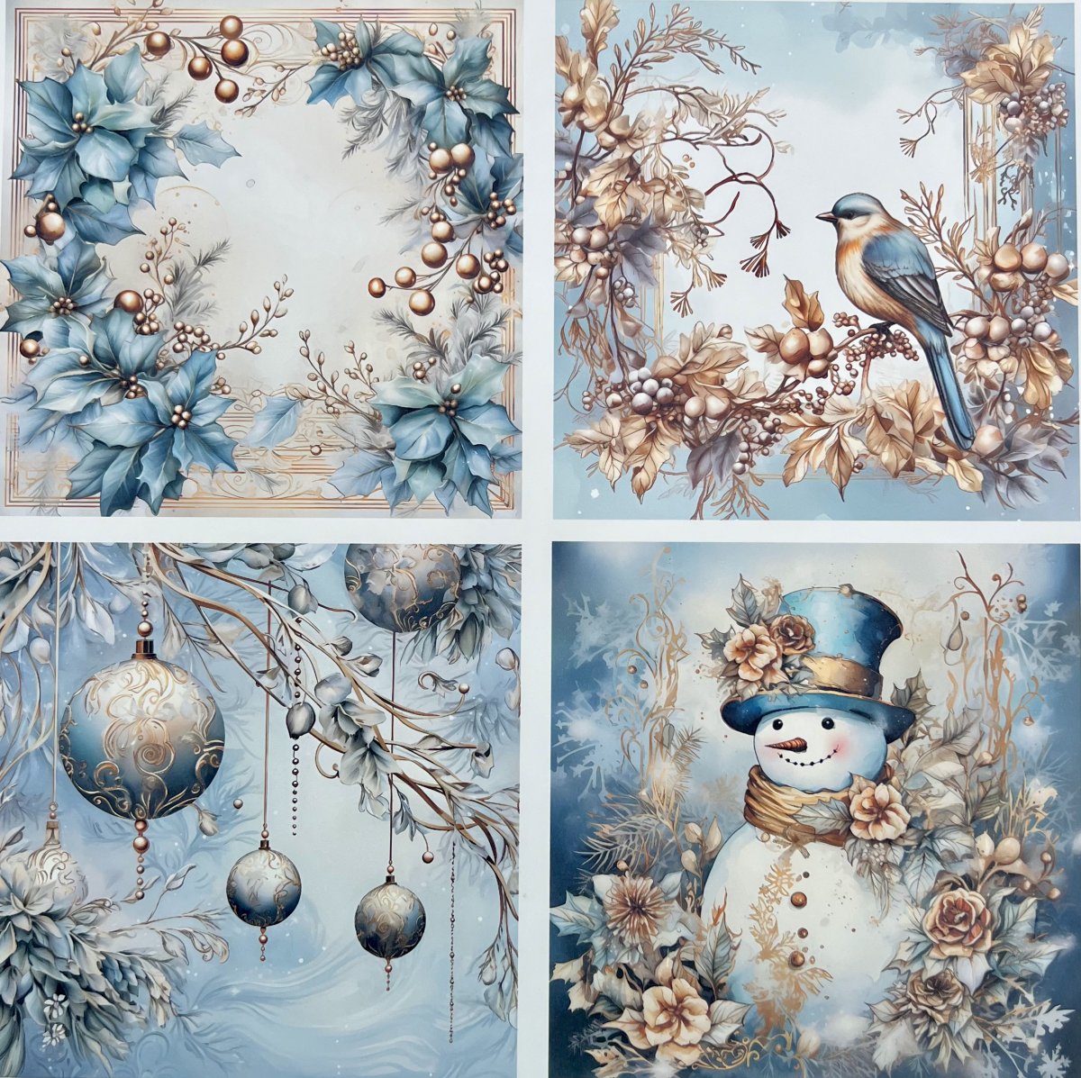 4 motivbilder på papper 12x12 inch - Ljusblå Jul 3