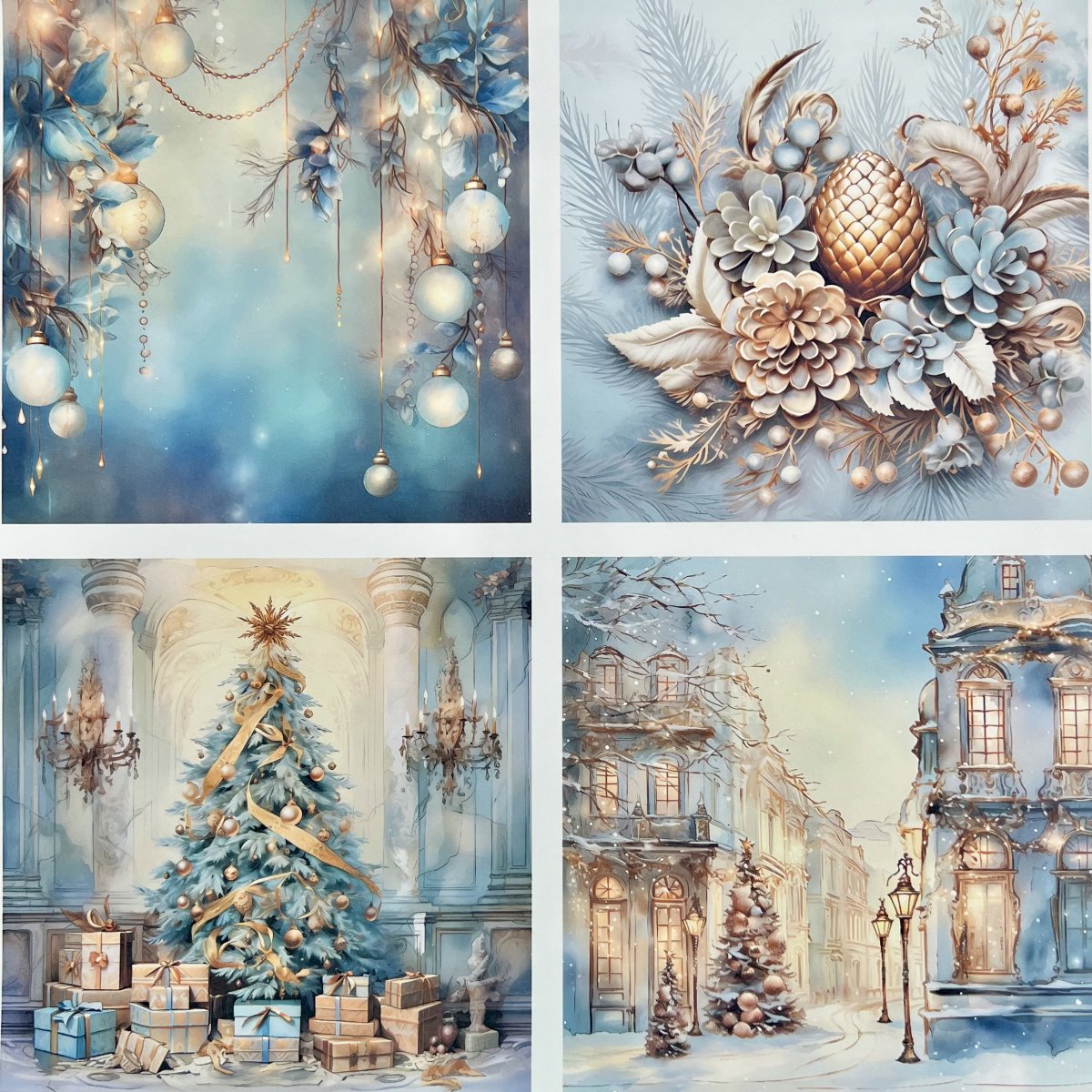 4 motivbilder på papper 12x12 inch - Ljusblå Jul 4