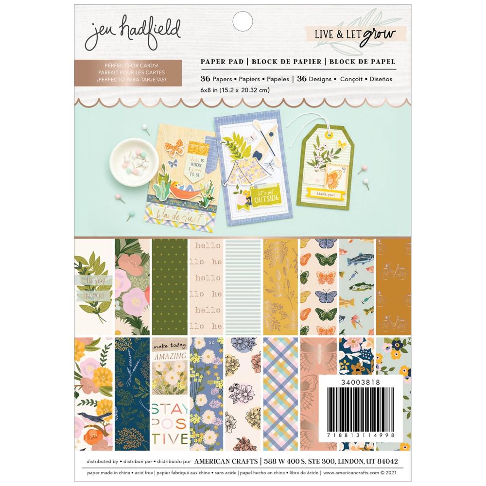 Live and let grow! This beautiful collection from Jen Hadfield will provide creative options for card making, journaling, scrapbooking and more. Includes 36 single sided 6x8 inch papers. Imported.