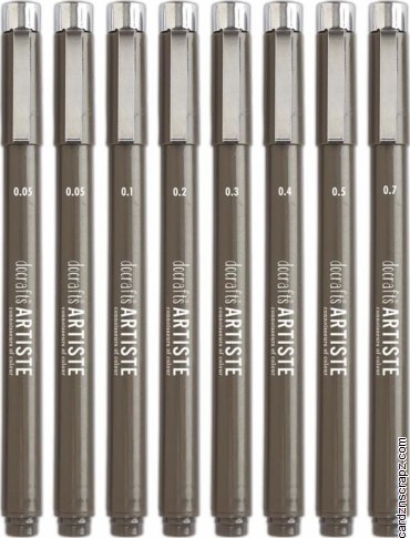 Artiste Black Fineliner Pen set. 8 pcs. Nib size 0.05, 0.05 0.1, 0.2, 0.3, 0.4, 0.5, 0.7 mm.